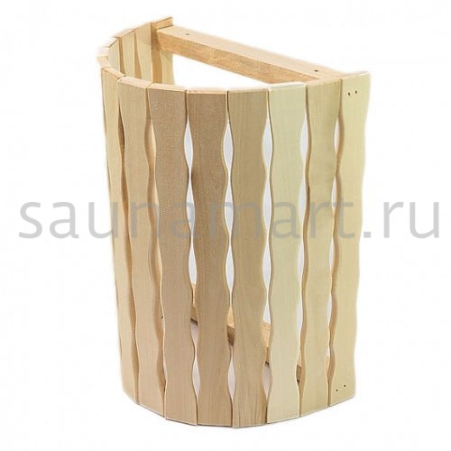 Для изготовления абажура обычно используется такая же древесина, которой отделана парная, в данном случае липа. Но, если применять кедр или лиственницу, они смогут еще и ароматизировать помещение. Абажур состоит из каркаса и реек.