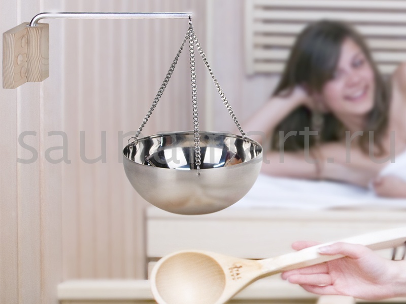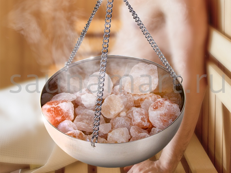 Универсальный комплект для бани и сауны с потолочным креплением. Чаша из нержавеющей стали с гималайской солью создает эффект соляной пещеры, насыщая воздух полезными ионами. При нагреве над печью кристаллы соли выделяют целебные испарения, благотворно влияющие на органы дыхания. Комплект включает кедровую подставку и стальную чашу с кусковой солью.
