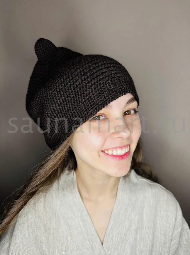Банная Шапка Шоколад. коллекция АРТ Натюрель. цвет шоколад. состав 30% лён. 70% тонкорунная шерсть