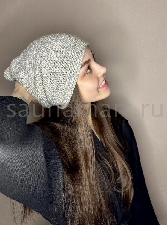 Банная Шапка Сильвер. коллекция АРТ Натюрель. цвет серебрист. состав 30% лён. 70% тонкорунная шерсть