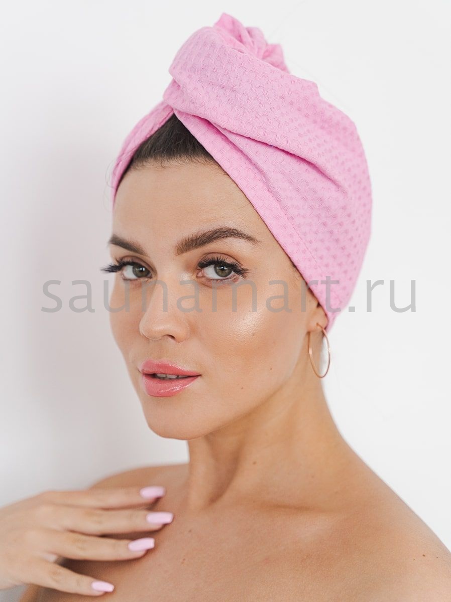 Чалма вафельная розовая