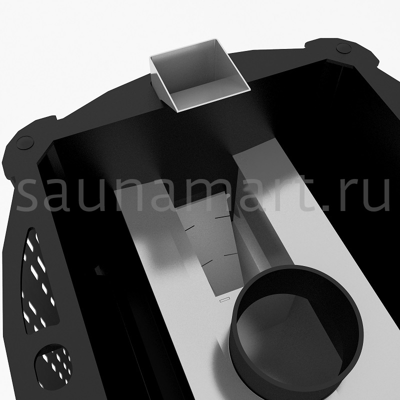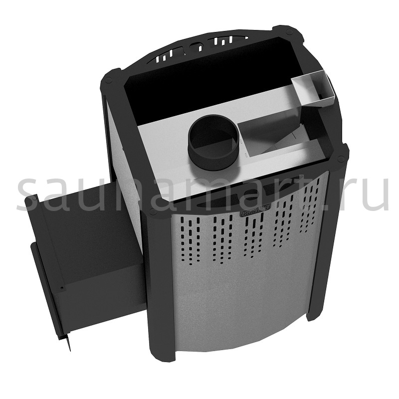 Рассекатель-отбойник пламени, встроенная камера каменки, крышка коллектора, канал подачи воды во встроенную каменку созданы из жаростойкой нержавеющей стали.