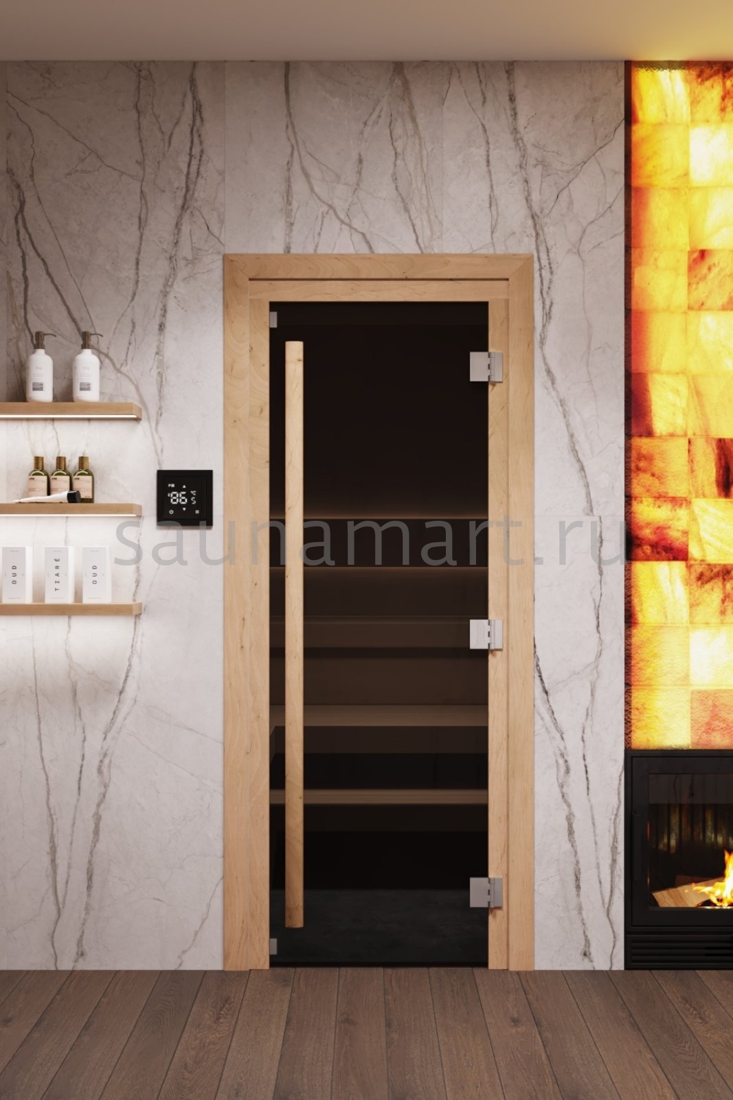 Дверь для сауны 2000х815 Премиум Бронза 8мм 3 петли ольха