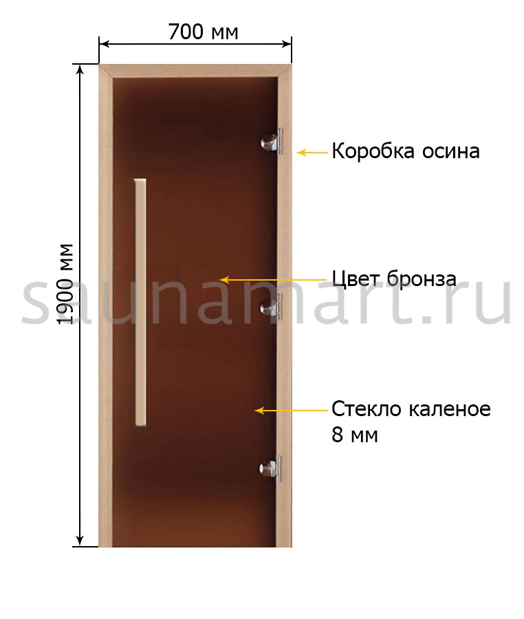 Дверь для сауны Экодорс 1900х700 (бронза матоваяосина) ручка длинная