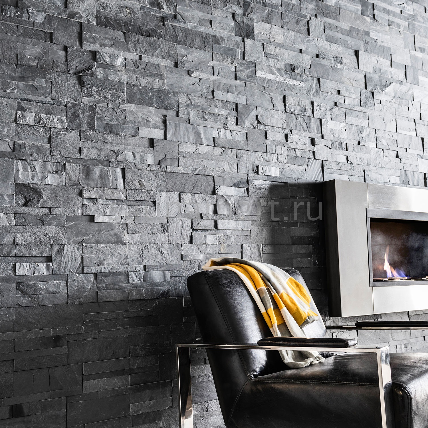 Черный цвет с характерной сланцевой слоистостью придает поверхностям благородную текстуру и визуальную глубину. Натуральный сланец обладает естественной влагостойкостью и термоустойчивостью, что делает его идеальным для облицовки каминов, фасадов и создания стильных акцентных стен. Особенно эффектно смотрится в современных интерьерах и лофт-проектах.