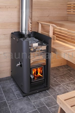 При необходимости, печь может быть оборудована водонагревателем, который Вы также найдёте в нашем магазине. Совмещение этих двух устройств подарит Вам возможность ополоснуться после парения. Кроме того, модель оснащена регулируемыми ножками, что позволяет упростить процесс стыковки печи и дымохода.