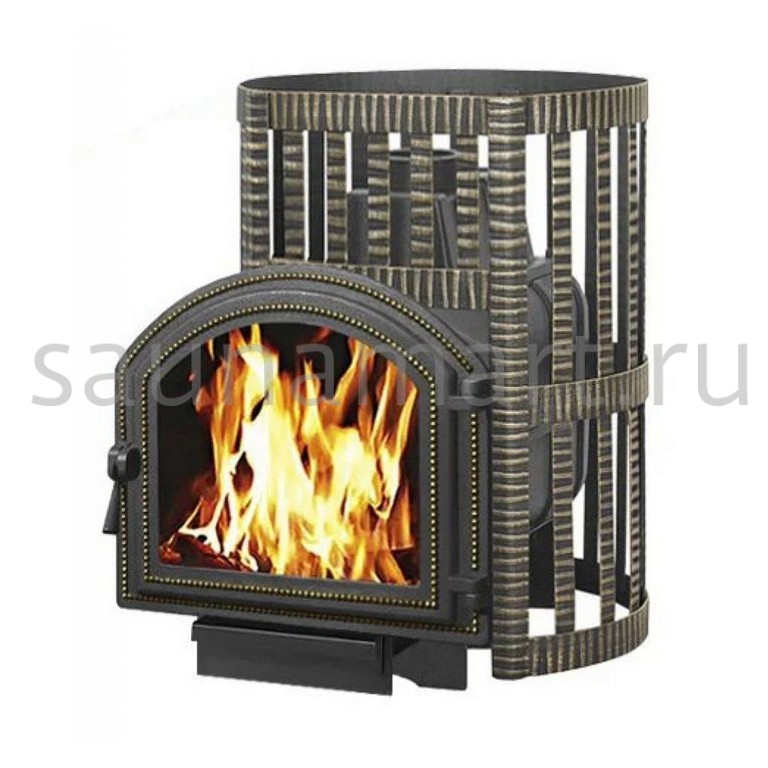 Банная чугунная печь Легенда Ковка 22 (217) укомплектована чугунной герметичной дверцей Везувий 217 с жаропрочным стеклом «SCHOTT ROBAX». Конвекционно-вентилируемый кожух "Ковка" изготовлен из металлической текстурированной полосы, покрашенной термостойкой краской и покрытой патиной «Бронза».