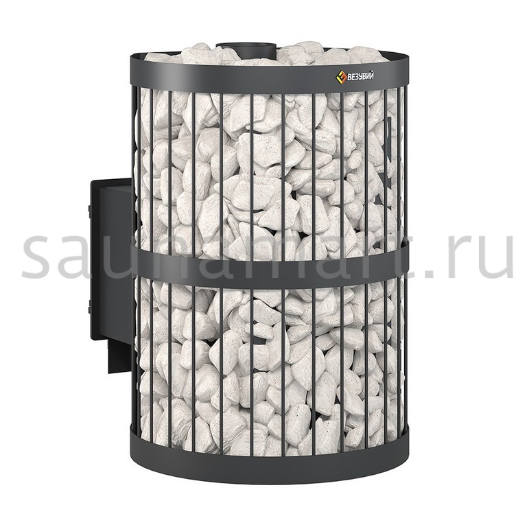 Воздух в зону горения подаётся через поддувало, его количество регулируется зольным ящиком совкового типа. Открытый зольник усиливает горение, закрытый – замедляет его. Чугунный пламегаситель перенаправляет поток горячего воздуха и дымовых газов к задней части топки. Это позволяет снять с печи максимум энергии в единицу времени. Чугунная дверь при нагревании не деформируется, сохраняет свою форму при остывании и предотвращает попадание продуктов горения на пол перед топкой. Печи Везувий СКИФ оснащаются сетками для камней. Сетки могут быть сделаны из металлического прутка или кованой стальной ленты шириной 40 мм. В сетки по всей высоте укладываются камни для бани, обеспечивая большой объём заклада и длительное удержание тепла после прогрева каменки.
