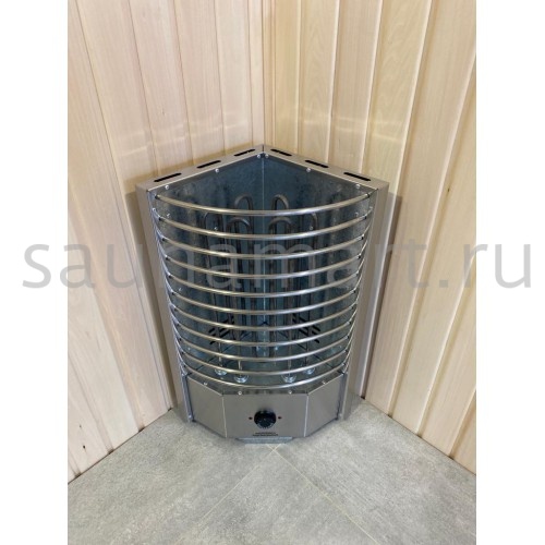 Электрическая печь ЭКМ 7 кВт "Угловая Олимпия Плюс" — угловая и пристенная модель с встроенным пультом управления, идеально подходящая для компактных бань. Производится в России (г. Челябинск) и подходит для помещений объемом от 7 до 11 м?.