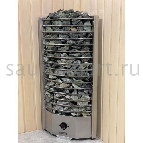 Электрическая печь ЭКМ 9 кВт "Олимпия Плюс" — угловая печь из нержавеющей стали с встроенным пультом управления, предназначенная для использования в банных помещениях. Производится в России (г. Челябинск) и обеспечивает эффективное теплоотдачу и комфорт в парилке.