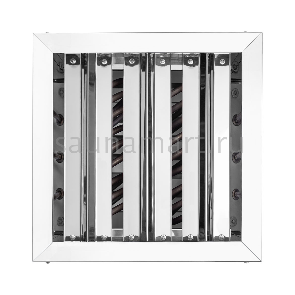Нагревательным элементом в печке является ТЭН из высококачественной нержавеющей стали. Его диаметр составляет 10 мм. Подобные нагреватели не боятся попадания влаги, что позволяет устанавливать электрическую каменку как в финские сауны с «сухим» паром, так и в русские традиционные бани с повышенной влажностью. На камни, находящиеся в электропечи, можно спокойно лить воду для повышения влажности пара.