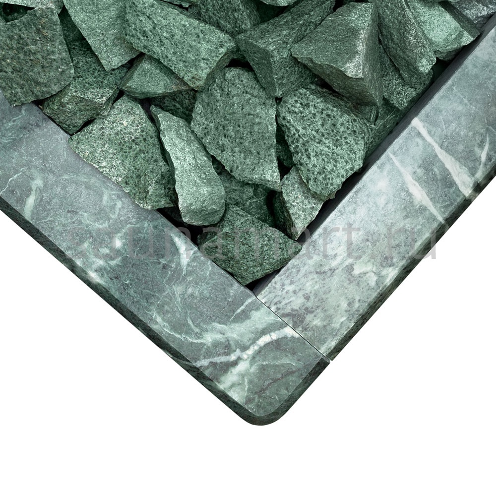 - Целебные свойства: Электрическая каменка со всех сторон облицована натуральным змеевиком, который стильно смотрится в парильном помещении. Змеевик, называемый «аптекарским камнем», обладает целебными качествами: оказывает обеззараживающий эффект, положительно влияет на кости, успокаивает и укрепляет иммунитет.