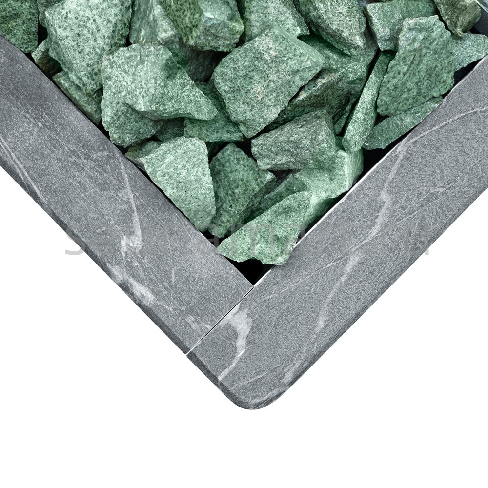 Электрическая печь KARINA Quadro 9 Талькохлорит – это электрокаменка, облицованная натуральным камнем со всех сторон, и обладающая мощностью оптимальной для семейных саун и средних бань объемом до 14 м3.