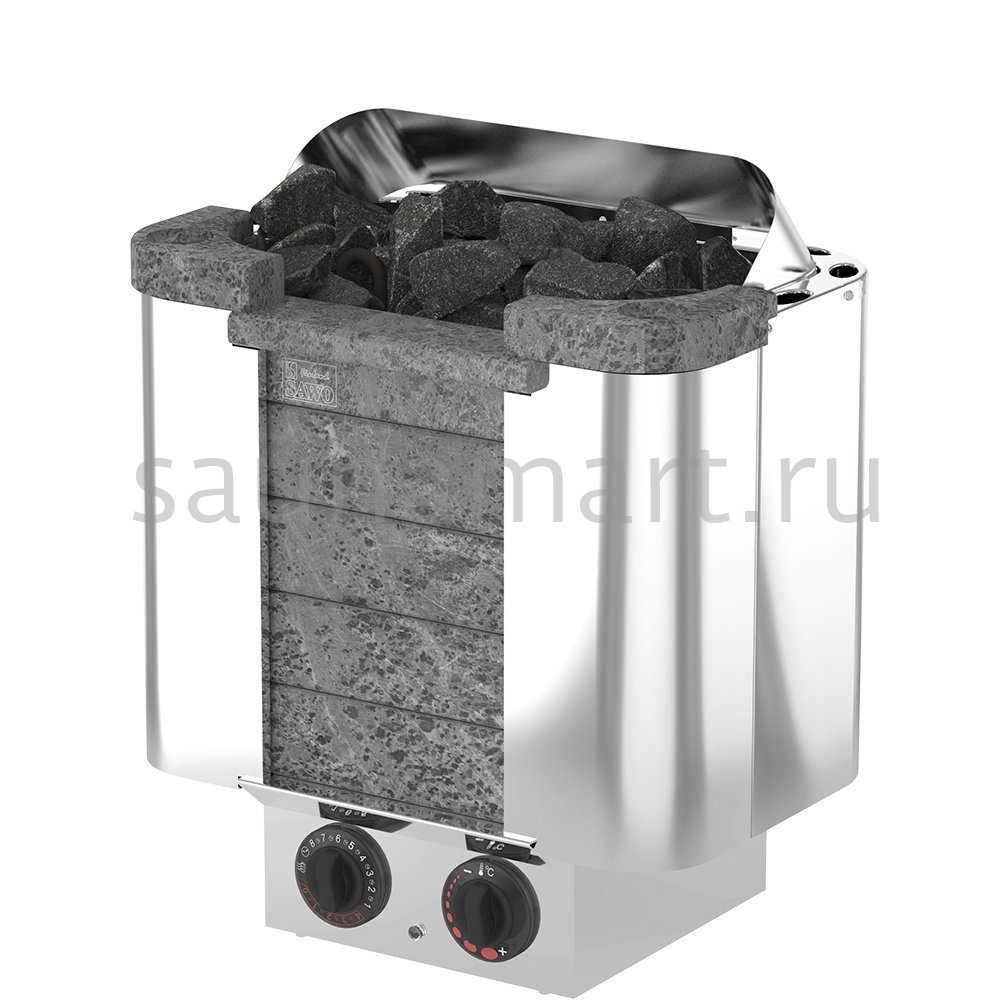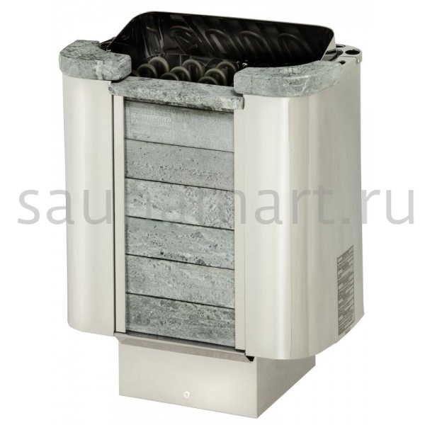 Печь SAWO Cumulus CML-60NB-P – это интересный подход к классической каменке для домашних саун. Печь дополнена элегантной панелью из талькохлорита с передней стороны – это 10 кг дополнительных банных камней, дающих приятное тепло и мягкий пар. Эргономичная, стильная и функциональная электрокаменка. Печь устанавливается навесным способом на стену. Основным материалом для производства финские инженеры избрали устойчивую к коррозии высококачественную нержавеющую сталь. Материал обеспечивает не только длительный срок эксплуатации, но и достойный внешний вид электрокаменки. Особой изюминкой печи CUMULUS CML-60NB является облицовка из талькохлорита фронтальной части печи. Сверху печь имеет 2 арома чаши из натурального камня, что непременно оценят любители ароматерапии. Электрокаменка вмещает в себя до 18 кг камней, которые вместе с талькохлоритной облицовкой массой 10 кг ускоряют прогрев сауны и снижают расход электроэнергии на поддержание нужной температуры воздуха. Подливая на камни воду или отвар из трав, вы быстро наполните парную большим количеством лёгкого мелкодисперсного пара. Управление осуществляется при помощи встроенной в нижнюю часть каменки панели управления.