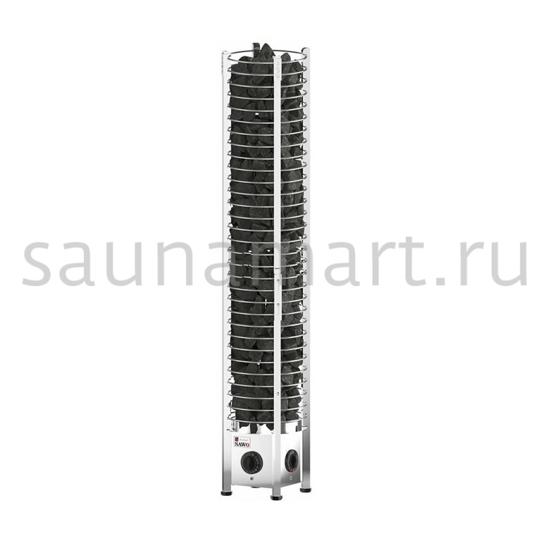 Серия Tower – это линейка печей с уникальным дизайном, внешне напоминающая каменную башню. Нагревательные ТЭНы расположены по центру, а каркас печи выполнен в виде сетки, заполненной большим количеством камней для сауны. В серии каменок Tower найдется подходящая модель как для домашних саун, так и для коммерческих парных. Модели имеют мощность от 3 до 24 кВт, причем наименее мощные предназначены для обогрева помещений объемом 2-4 кубических метра, а модели максимальной мощности идеально подходят для парных объемом до 40 кубических метров. Максимальная вместимость камней варьируется от 70 до 360 кг в зависимости от мощности. Конфигурация печи позволяет использовать Sawo Tower в саунах с многоярусным размещением пологов, обеспечивая равномерный прогрев каждого яруса. Если вы ищете универсальную электрокаменку, Tower - один из лучших вариантов. Подливая воду на камни, можно достичь любого уровня влажности, а благодаря пульту управления заранее или в процессе парения установить необходимый температурный режим.