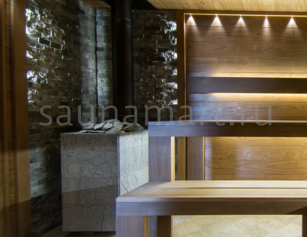 Материал обладает выдающейся теплоёмкостью и термостойкостью до 1200°C, что делает его идеальным для облицовки печей и каминов. Устойчив к влаге и механическим воздействиям, сохраняя первозданный вид десятилетиями. Особенно эффектно смотрится в рустикальных интерьерах и банных комплексах.