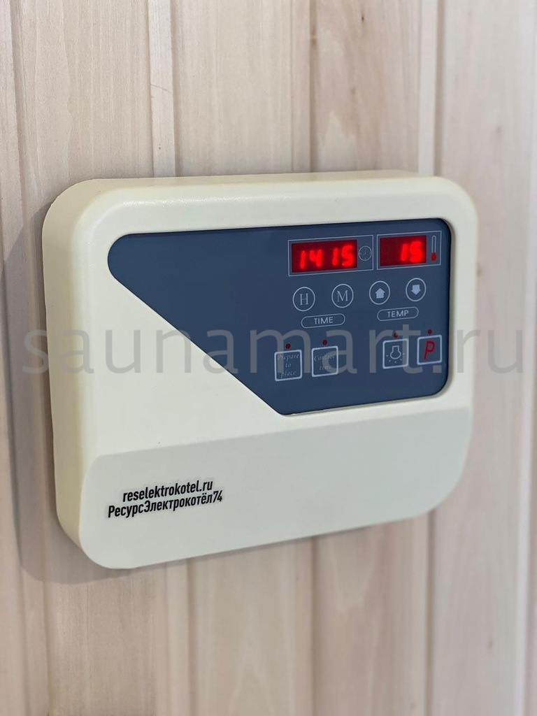 Пульт управления элeктрoкaмeнкой (электропечью для сауны) ПУЭКМ "Ресурс" цифровой программируемый 15 кВт. Пульт устанавливается в предбаннике, а датчик заводится в парилку.