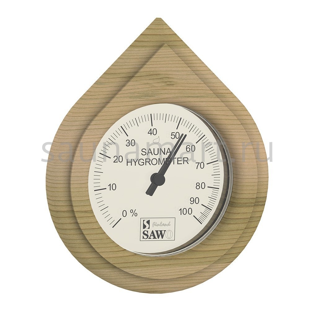 Гигрометр 250-HD от компании Sawo имеет оригинальную форму капли. В широкой рамке из древесины кедра находится большой, круглый, графичный циферблат, который сообщит об уровне влажности воздуха. Данный прибор прекрасно подойдёт для использования в парной. Шкала измерения показывает данные в процентном соотношении от 0 до 100. В качестве дополнения к гигрометру у нас можно купить термометр с идентичным стилем. Благодаря универсальному дизайну гигрометр станет прекрасным дополнением любого интерьера. В нашем интернет-магазине представлен широкий ассортимент измерительных приборов в корпусах из натуральных материалов.