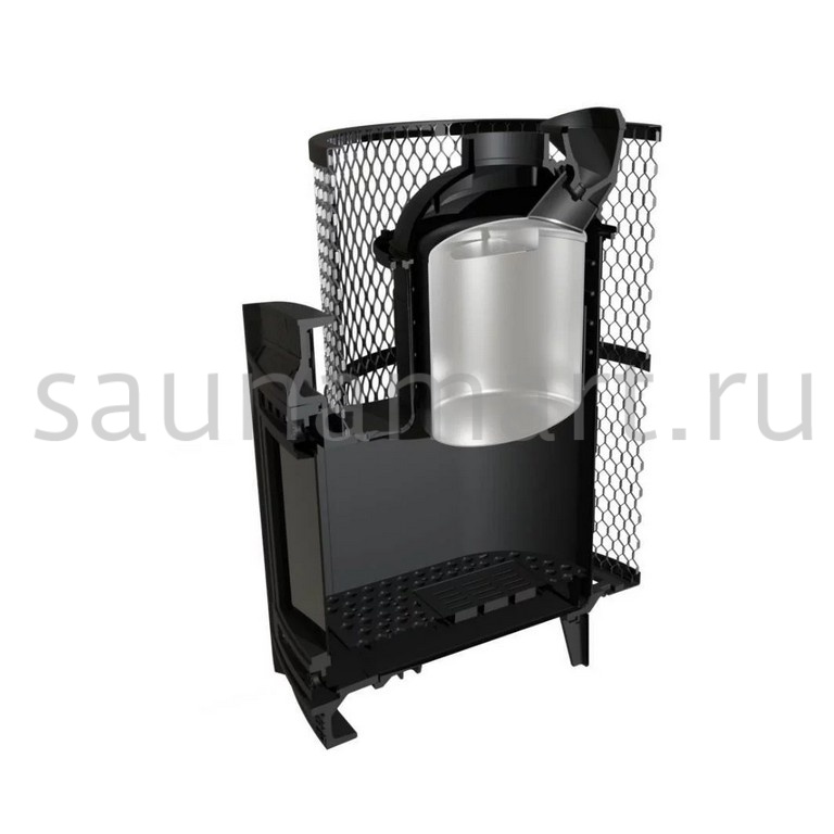 Компактная и экономичная модель с коротким топливным тоннелем. Кожух печи изготовлен в виде сетки из стали и полностью заполняется природными камнями, обеспечивая высокую динамику нагрева парильного помещения.